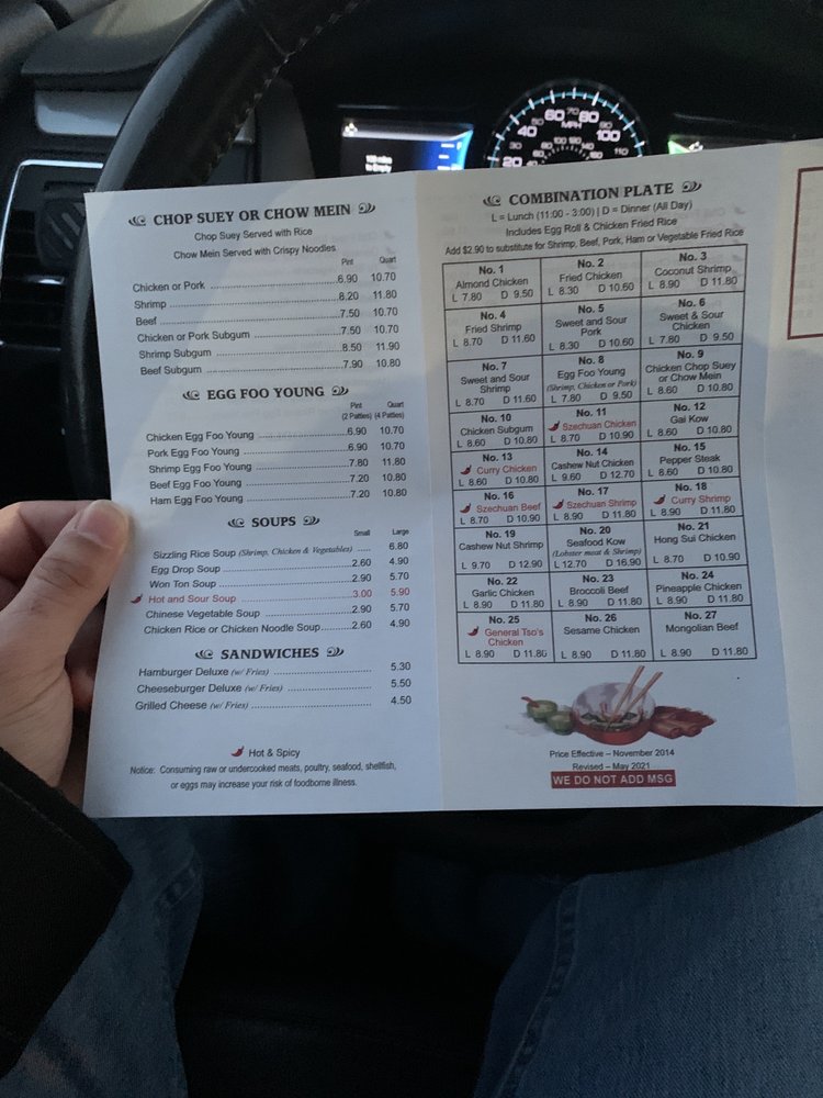 New Hong Kong, a Chinese seafood restaurant located in Taylor, MI, impresses with its wide range of menu options. From delicious sandwiches like the Hamburger Deluxe to flavorful Vegetarian Corner dishes like the Family Tofu Fried bean curd with vegetables, there is something for everyone. The Chop Suey options, such as the Chicken Subgum and Shrimp Sub Gum, are also a hit among customers. Reviews rave about the generous portions, friendly owner, and top-notch customer service. With a pleasant atmosphere and affordable prices, New Hong Kong is a must-try for Chinese food enthusiasts. Whether you're looking for a quick takeout meal or a cozy dining experience, this restaurant delivers on both taste and value. Experience the best Chinese food in town at New Hong Kong.